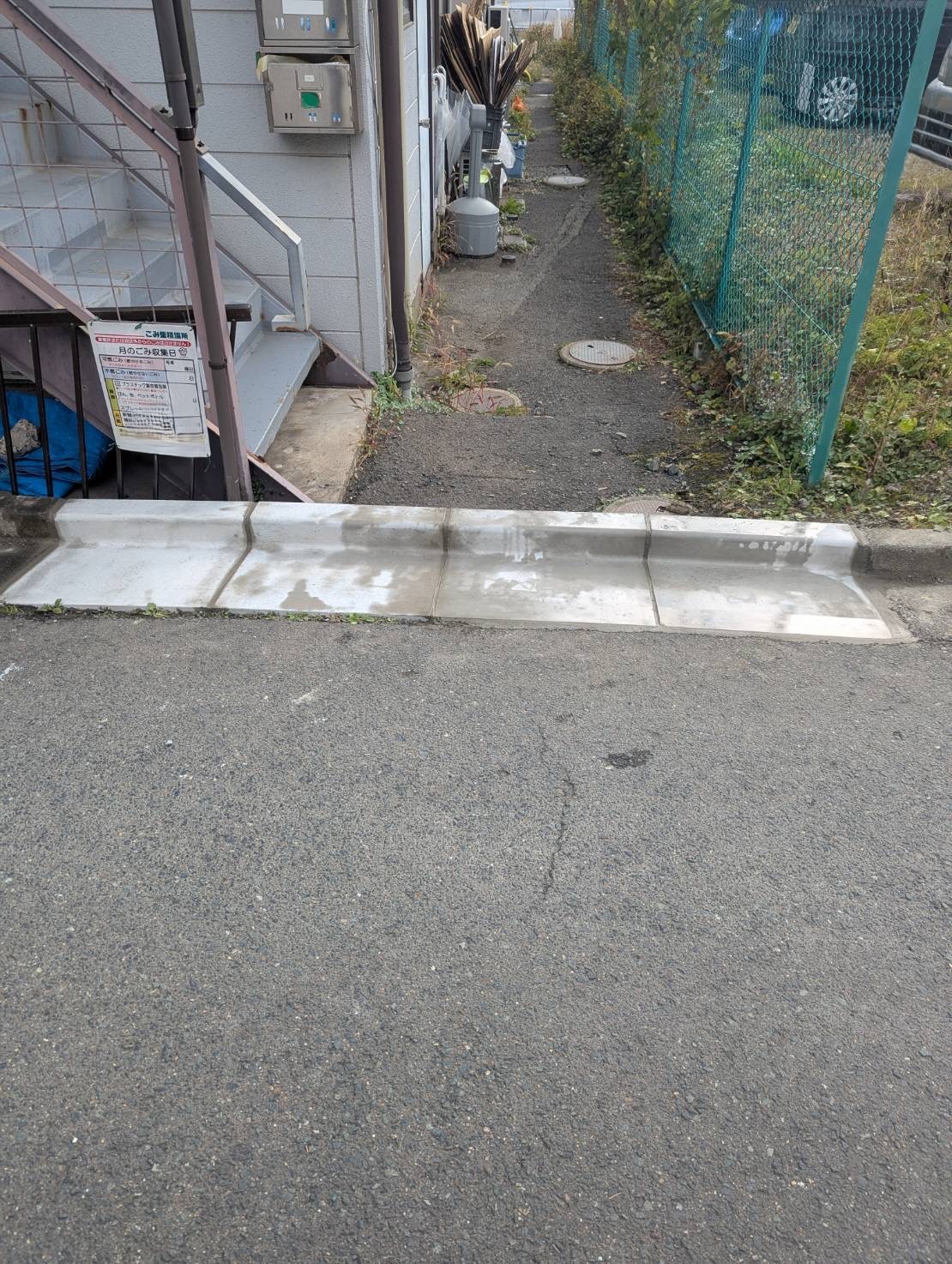 10 292025 ~ 側溝補修工事 ~ その他 アパート横のL型側溝入れ替え工事のご依頼でした。 🔨before🔨 写真を見ても分かるとおり、 真ん中部分の側溝が歪んでいるため 雨が降った際にアパート敷地内に 雨水が流れてしまうとのことでしたので 新しいものに交換作業をしました🔨 まず古い側溝をはがします。 段差など整えて 新しい物をはめていきます。 全てはめこみまして ✨after✨ 隙間をモルタルで埋めて施工完了です✨✨ とても綺麗に仕上がりました😊 こういった日常でのお困り事など何でもご相談下さい!! 現地調査や見積りなど迅速に対応させていただきます! ご連絡お待ちしております😊 Post Share Pin it ✨✨掲載中です✨✨ 前の記事